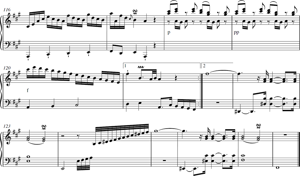 C.Ph.E.バッハ:《専門家と愛好者のための6つのクラヴィーア・ソナタ》第1集より〈ソナタ第4番 イ長調〉H.186, Wq.55/4(1765年作曲)第1楽章 アレグロ・アッサイ 第116~128小節