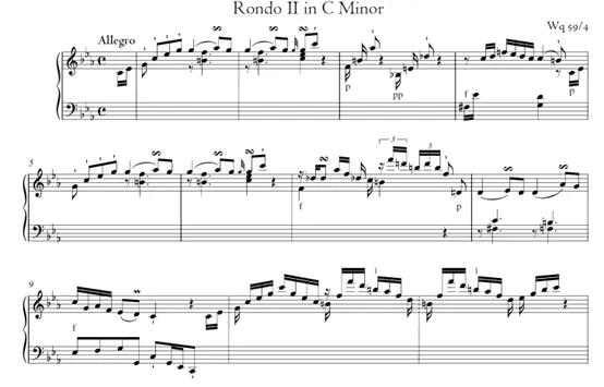 C.Ph.E.バッハ《専門家と愛好家のためのクラヴィーア曲集》第5巻より〈ロンド ハ短調〉H.283, Wq.59/4(1784年作曲) 第1〜11小節