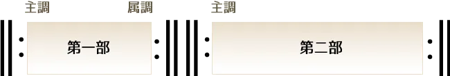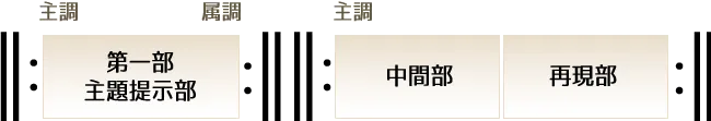 ② 中間部と再現部を反復する3部形式(長い曲では反復なし)