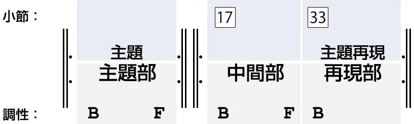 このように、第19番は室内楽のスタイルを念頭に置いていると考えることができます。ただし、通常、弦楽四重奏でスケルツォ楽章は第2楽章か第3楽章に置かれ、拍子はメヌエットに由来する3/4拍子ですので、3/8拍子のチェルニーの第17番は古典的なスケルツォ/メヌエット楽章よりも早めのテンポで演奏されるのが様式に即していると思います。今日一般に演奏されるテンポは、得てして3/4拍子に聴こえがちです。