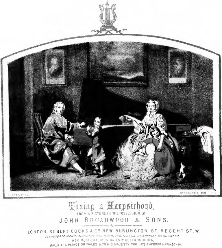 図 『ピアノフォルテ、その起源と進歩、構築』(1860)の扉にある挿絵