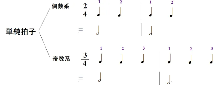 基本的な拍子には、大きく分けて単純拍子と複合拍子があります。1. 単純拍子