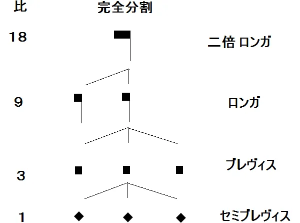 b 小プロラツィオ:セミブレヴィスとミニマの完全分割関係
