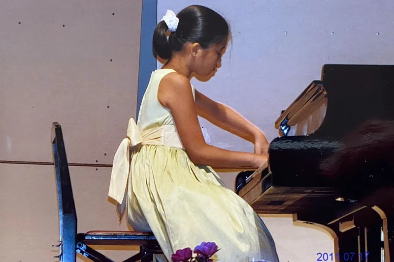 小さい頃は「ちょっと弾ける方かも」と思っていたのが、コンクールに向けて準備するにつれ、「自分ってまだ全然弾けないんだなぁ」と実感しました。自分がいるフロアが上がっていくごとに、どんどん自分が小さく感じるのと同じ感覚です。最初のコンクールは成績が悪くて、とても悔しかったのと同時に、コンクールは厳しい世界なんだと痛感しました。その後、一年に一度ピティナのコンペティションを受けるという習慣が何年か続きました。小4くらいの時に、初めて先生も私も「これなら予選突破できるかも!」と思えた瞬間があり、その時、これが「できた」というフィーリングなんだ、とつかめた気がします。今思えば、小さいながらにがんばっていたなと思います。