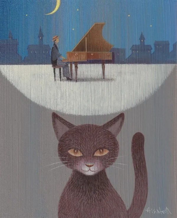 (この人の性質はすこし、ショパンさんに似ているような) 鍵一がその内訳を考える間もなく、リストが鍵盤をさらりと撫ぜた。 「せっかくやし、弾こか、このピアノ」 「えッ、いいんですか。皆様の生演奏を聴けるなんて……夢みたいです!」 「なにかテーマを決めて、4人それぞれ、即興で演奏を披露しようやないか」 「おお、いいね」 「4人……? まさか、ぼくも弾くんですか?」 「当たり前や。ケンイチ君、ピアニストの卵やろ」 いちどは引いた汗がまたドッと噴き出る。ピアノを習い始めて今日に至るまでの記憶が走馬灯のように駆け巡り、目がちかちかし、耳が熱くなり、師の顔が浮かび、オロオロとひざこぞうを掻く間に、音楽家たちはもう即興演奏のテーマについて話し合っている。「花?」「鳥はどう」「風は」などと言い合ううち、ふいにリストが振り向いた。 「せや、今夜はケンイチ君が、演奏のテーマを決めてええで」 「テーマ? テーマ、ですか。ええと」 うろたえながら店内を見回して、テーブルの上のナマズ料理に目が留まる。 (ナマズ……キャット・フィッシュ……猫!)[※11](#c11) 「あの、テーマは『猫』でいかがでしょう?」 「ええやんか。じゃ、ケンイチ君が一番手やで」 促されてピアノの前に座った鍵一は、戸惑いながら、その19世紀のプレイエルのピアノを見回した。[※12](#c12)弦が飴細工のように細い、鍵盤の数が6オクターブ半しかないピアノを、鍵一は今まで一度も弾いたことがなかった。試みに、両手をそっと鍵盤に置いてみる。和音を鳴らしてみた途端、あまりにもやわらかな感触におののいた。 (このピアノ、弾きづらい……! 鍵盤が細くて、浅くて、そっとふれただけでも音が出る。音量が出ない。ロングトーンが伸びない。21世紀のピアノより、ピッチがだいぶ低い……) 「エラール社[※13](#c13)の華やかで頭の回転の速い子に比べると、ウチとしてはちょっと物足りひんけど。素直でおとなしくて、ええ子やで。気長に育てていくつもりや。 さア、ケンイチ君。曲はなんでもええよ」 「はいッ、只今」 (ええと、このプレイエルのピアノで『猫』を表現するなら……ええと、猫、猫、ショパンさんが広告塔を務めていらっしゃるという、このピアノで……。あッ、そうだ、ショパンさん作曲の、『猫のワルツ』!) ショパンのメモをくわえた猫が、脳裏をサッと跳んで行く。鍵一は深く息を吸うと、鍵盤へ指を置いた。 「そ、それでは僭越ながら、披露いたします。題して『吾輩は猫である』[※14](#c14)」 「おっ、なんだろう」 「吾輩は猫である。名前はまだニャい。日本で生まれ、海をはるばる渡り来て、どこへ行くべきか、とんと見当がつかぬ」 「迷子の子猫?」 「薄暗いパリの夕暮れをむやみに駆けたらゴツンと音がして、眼から火が出た。ニャアニャア泣いているところをリストさんに拾われ、ついてゆくと音楽家の集会所らしき屋敷へ着いた」 「ええやん、ええやん。素敵なアクシデント!」 「この屋敷のうちでしばらくはよい心持に座っておったが、しばらくすると非常な速さで運命が回転し始めた……! 吾輩はご指名にあずかり、3人の偉大なる音楽家の御前にて、3拍子のワルツを奏するのである……」♪ショパン作曲・ワルツ第4番ヘ長調 Op.34-3 通称『ねこのワルツ』※15