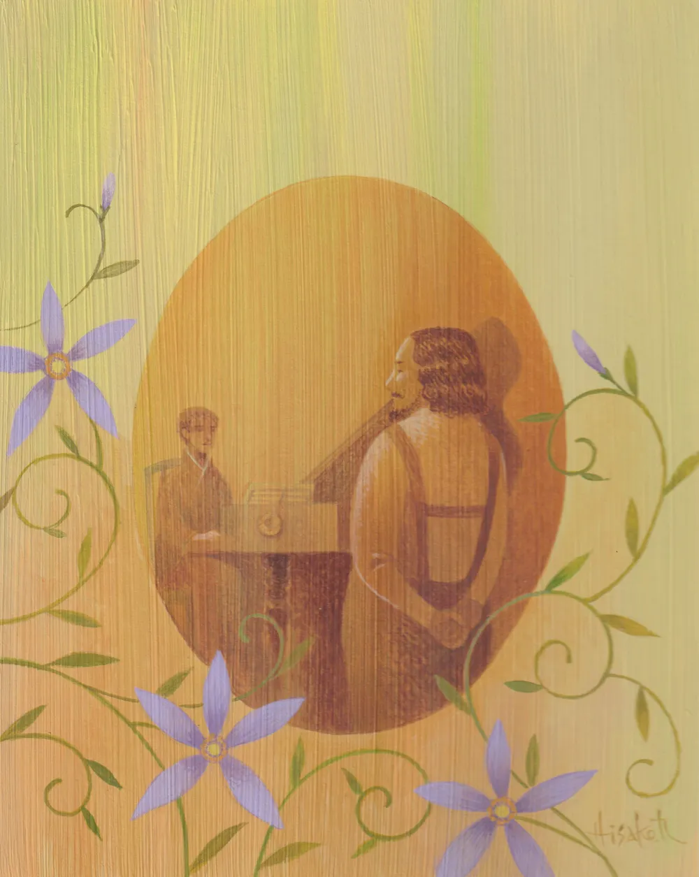 19世紀の音楽家・チェルニー氏から贈られたモチーフを活かし、鍵一が作曲するオリジナル曲。19世紀の旅で出会った芸術家たちの肖像画を、変奏曲の形式で表した作品です。 実際には、作曲家の神山奈々さんが制作くださり、ピアニストの片山柊さんが初演をつとめて下さいます。オーディオドラマやコンサート等でお聴きいただけるよう、現在準備中です。 神山 奈々さん(作曲家) 片山 柊さん(ピアニスト)リストが鍵一に『一年間パリに居座る方法を考えるように』と、お題を出したエピソード
