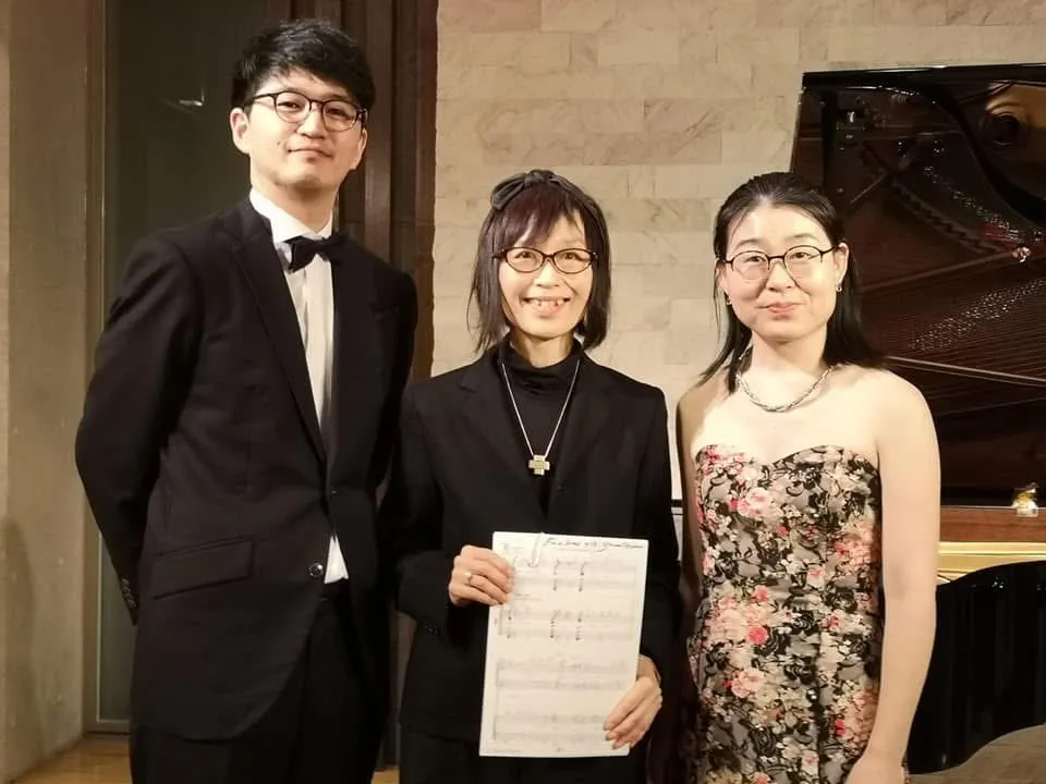 細川藩ゆかりの熊本市の声楽家団体であるグルッポ・ヴィーヴォさんからの委嘱だったんです。代表の春日さんが「これは徳山さんの代表作になる!!」とおっしゃって・・・。台本も含めて完成までに2年かかったんですよ。作曲家としての最初の受賞作品「ファンタジア〜ハープと笙のための」は、ユダヤ系ハンガリー人のハンナ・セネシュの生き方を描いた曲なのです。権力に抗って果敢に強く生き抜いた女性。偶然なんですが、そういった女性を描く運命なのかもしれません。