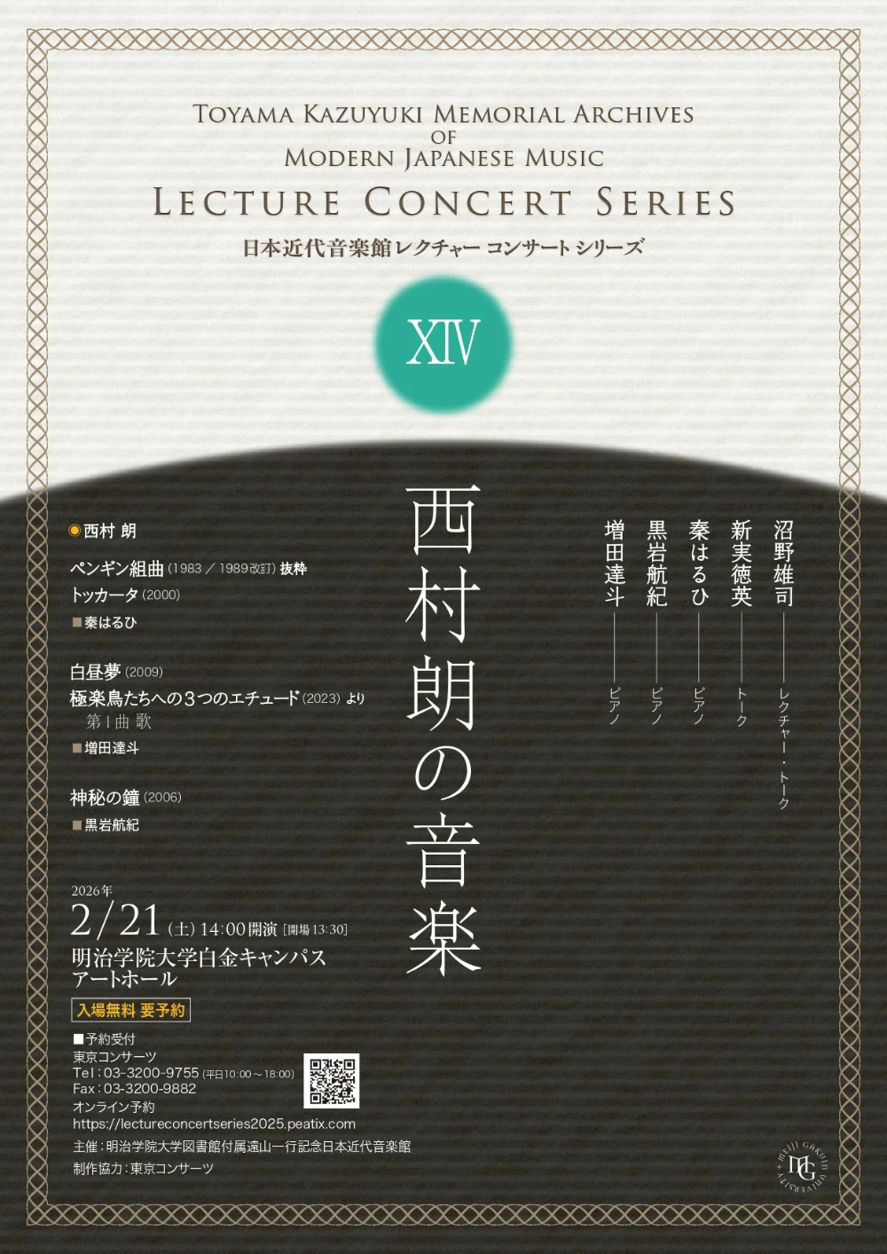 2026年2月21日、日本近代音楽館の「西村朗の音楽」レクチャーコンサートでのご出演も楽しみにしています!