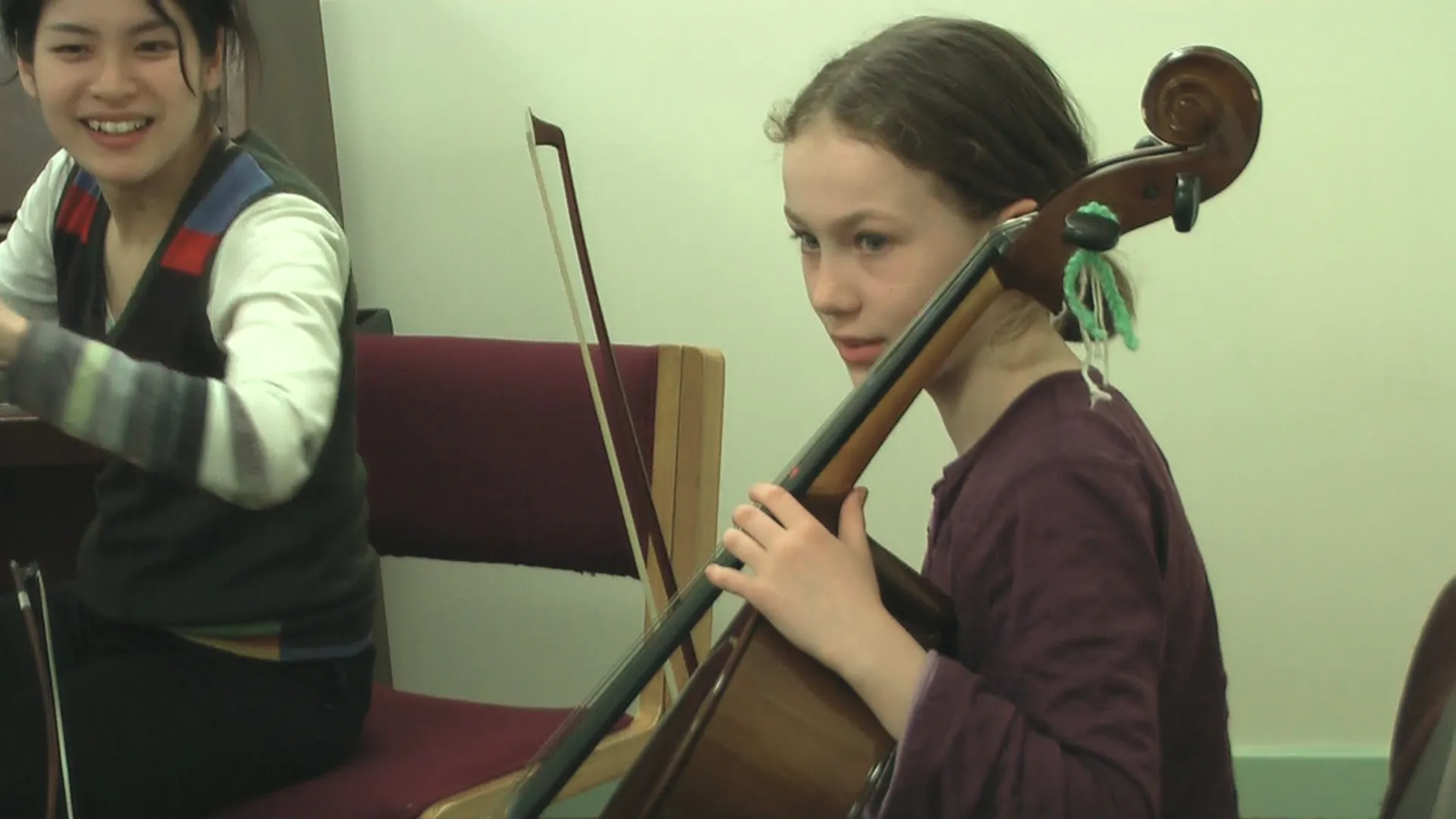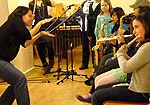 このプログラムには、日本の神戸女学院からの留学生、東瑛子(あずまえいこ)さんもヴァイオリンで参加していた。グレゴリー先生が来日された際のワークショップに感銘を受けて渡英、昨年秋からリーダーシップコースに在籍している。「参加したワークショップで、今子どもたちが感じているように、'自分のアイディアが音楽になっちゃった!'という嬉しい衝撃を自分自身が感じたんですね。その思いが一番のきっかけだったと思います。」と東さん。
