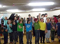 2日目には、それぞれのパートの音楽がつなぎあわされ、人魚とのラブソングも作られた。いよいよ最終日、これまでに作った音楽や歌詞を復習し、全体のステージプランも作られ、その日の最後に家族に披露するため練習に励む。オープニングは、からっぽのステージへ外から子どもたちが「毎日同じ...」と歌いながら入って来てステージ上をさまよう、精神病院の演出。ばらばらと全員が持ち位置に着くと、急にパーティの賑やかに音楽へと転換。それぞれのグループが作った音楽が全体の音楽になり、時にソロが入り、最後には全員が歌いながら前に出てきて、約20分ほどの大作が出来上がった。家族の前で晴々と笑顔で拍手を受ける子どもたちの顔は、満足感と自信に満ち溢れていた。