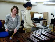 同じ音楽の流れの中で同じ4小節という持ち時間ながら、それぞれが持ち帰ってきた産物は実に様々。お互いに別のグループの作品を聴き合い、「どんな順番で始めるのがいいと思う?」「マリンバの作ったフレーズを今度はフルートが引き継いで」などと、全体の構成も皆でアイディアを出して試演し、しっくり来なかったら別のアイディアを探す。従って、ちょっとしたアイディアから生まれたフレーズが、終いにはメインのモチーフになっていたり、2日目の終わりと3日目の終わりではいくつものフレーズが形を変えていたり、最初には予想もできなかった展開が4日間の間に起こっていたのであった。