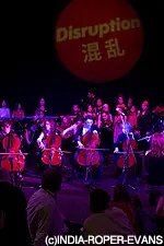 もう一つの「Disruption(混乱)」と題されたイベントは、音楽とファッションとをあわせたユニークな試みだ。バービカンのアートギャラリーで2010年10月から2011年2月まで開催された「Future Beauty: 30 Years of Japanese Fashion(未来の美:日本のファッション30年)」に絡めて行われた一連のイベントの一つだ。