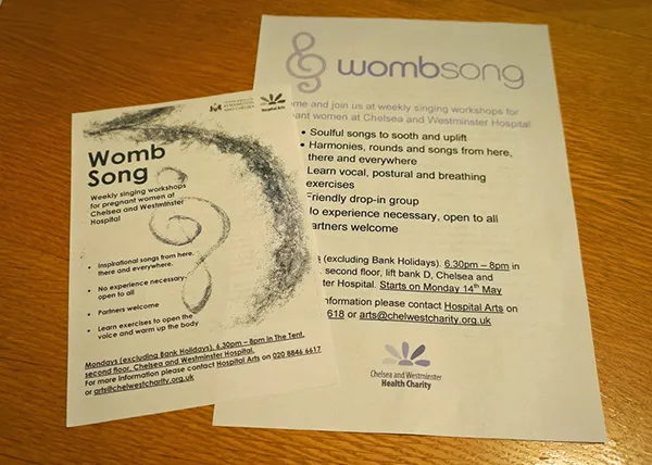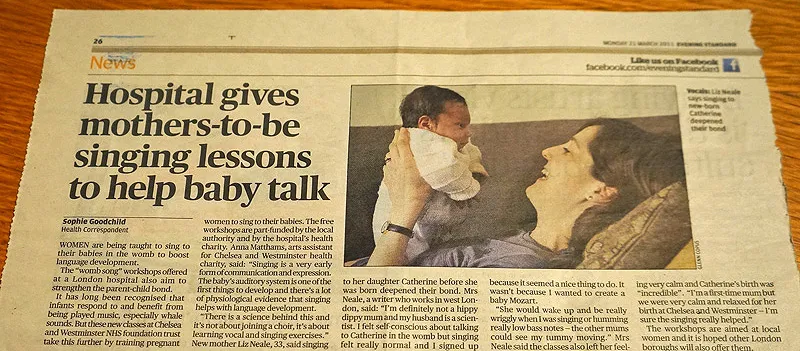ロンドンにある病院で試みられているユニークなワークショップに、「Womb Song(ウーム・ソング)」、直訳すると「子宮の歌」と名付けられた、妊婦のための歌のクラスがある。これは、お腹の赤ちゃんに音楽の英才教育をというのではなく、妊娠期間中に母親が歌うことが、妊娠中、出産、出産後の母親と赤ちゃんへのメリットがあるということで、産科スタッフの後押しのもと、病院の一角で行われているワークショップなのだ。