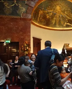 ベビーカーは正面入り口に並べ、赤ちゃんと必要な荷物を持ってホールの座席へ。席に座ろうとして、今までコンサートに、こんなに荷物を座席まで持ち込んだことはあっただろうか?と思う。赤ちゃんに授乳するためのケープ、タオル、ミルク、あやすためのおもちゃ、おむつや着替えもすぐ手元に控えていなければ、0歳児の特性上、いざという時には、赤ちゃんを抱えてベビーカーの山から荷物をかき分ける余裕はない。隣と余裕を持って座り、泣き出したら通路にすぐ出られるように、通路から近い席を探す。どの親子も同じようなことを考えているので、余裕をもって各列に数組ずつ座り、それでもホールの前半に収まるくらいにしかチケットを発行していない。そのため、各シーズンに2~3回ずつあるコンサートは、すぐに売り切れる。6ポンドと料金が安いのも、万が一のことを考えると参加しやすい理由の一つだ。コンサート中は、母親は座席で授乳することもできるし、あやすために立ち歩いたり、ホールの後方に置いてあるプレイマットで赤ちゃんを寝ころばせて遊ばせることもできる。