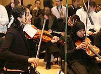 That's our work in the school. Now, 'Connect' is the activities outside the school. Over the last 20 or 25 years, we have built up a relationship with the community in East London, and have taken students and teachers into schools, community groups and hospitals, to give performances and also to run workshops where children have the opportunity to compose and create music using percussion instruments, their voices or their own instruments if they play, and build music up together with professional musicians.