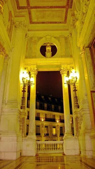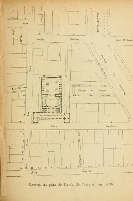 1829年に建てられたジャンージャック・マリー・ユヴェの設計による幅34,5 メートル、長さ52 メートルの1700 席の長方形の劇場で、正面の通りの名からサル・ヴァンタドールと呼ばれた。パリで最も優雅な劇場として名高く、馬蹄形の美しい客席や贅を凝らしたロビーと階段の造りとは劇場というよりサロンのような趣。ここのボックス席を購入することが常連客のステイタスとなっていた。