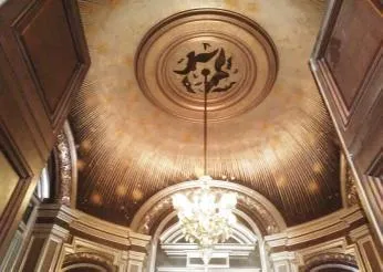 当初の照明は電気ではなく、ガス灯であったために、ガス管を隠す目的で存在した。