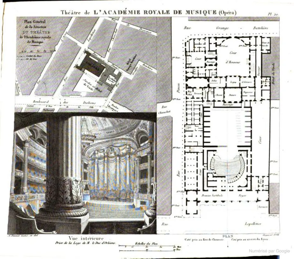 Alexis Donnet (1782–1867)、J. Alexis Orgiazzi (1799–1839)、両著による『パリの劇場建築学Architectonographie des théâtres de Paris』第2巻の図版20より。