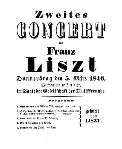 リストのウィーン公演プログラム(1846年3月5日)