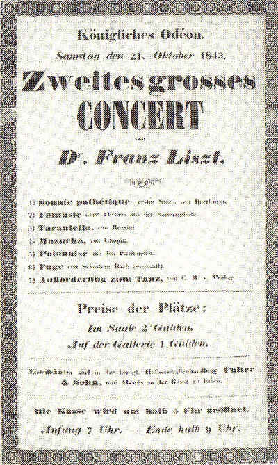 リストのミュンヘン公演プログラム(1843年10月21日)