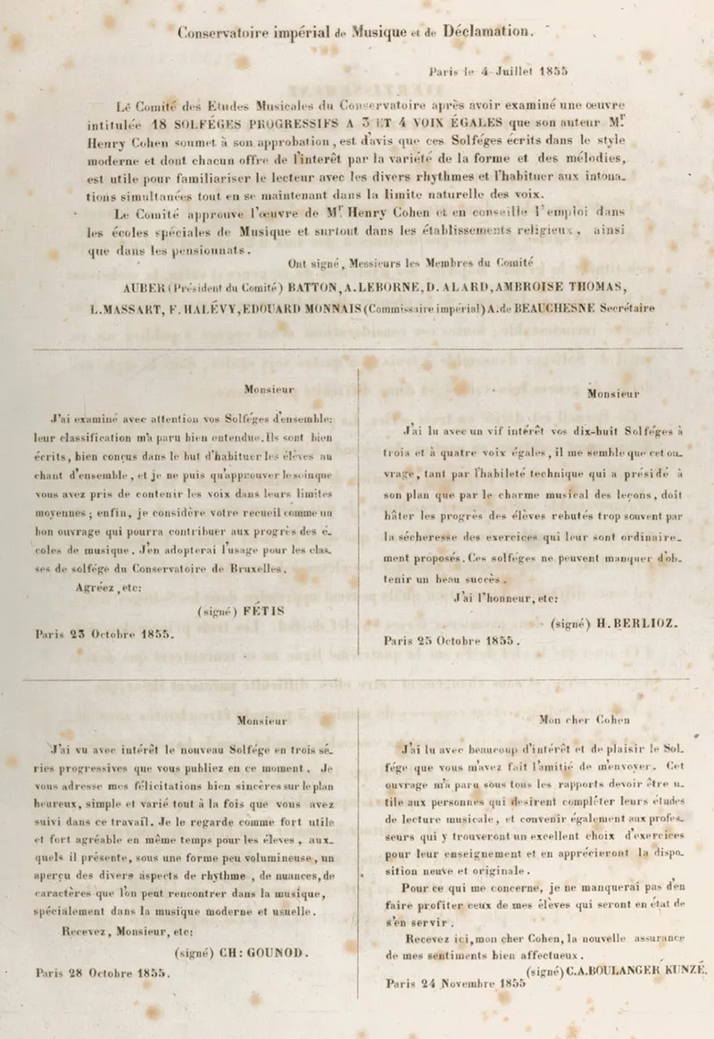 1856年に出版された音楽理論家ヘンリー・コーエンHenry Cohenの著作Solfèges progressifs à 3 et 4 voix égales に、推薦者のひとりとしてフェティス、ベルリオーズ、グノーに続き、シャルル=アメデ・ブーランジェの言葉が掲載されている。