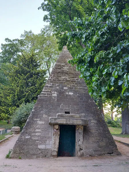 古代エジプト様式のミニチュア・ピラミッドはシャルトル公によって造園当初(1778)から置かれていた貴重な建物。
