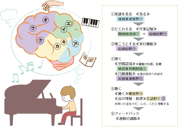 脳の領域にはそれぞれ役割があるピアノを演奏と脳の働きにはどういう関係があるのですか?