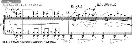 ペダルは基本的に自由に、生徒には最初から自分で考えて入れさせます。あとからペダルを入れると、ペダルの技術が追いつかない。逆にここは踏まない方がいいというところだけ指示してあげるかな。正解はひとつではないので、何種類かやってみて決めることです。