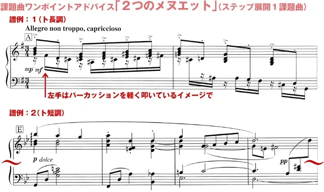 ではここで、課題曲《2つのメヌエット》のアドバイスをお願いできますか?この曲は、リズミカルなト長調と、ジャズハーモニーが美しいト短調の対比が面白いですね。