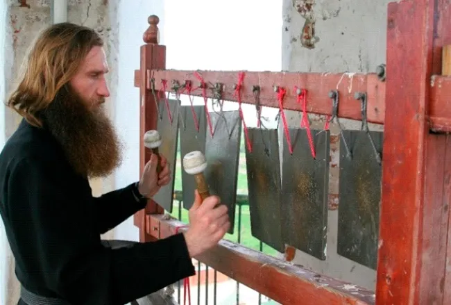 東方教会圏すなわちビザンツ帝国内では従来、鐘ではなく「セマントロン(シマンドロン、ロシア語:било)」が用いられました。セマントロンは木製の板であり、ハンマーで打ち鳴らして音を立てます。木の板を叩くと言っても、単調にただ打ち鳴らすのではなく、強弱や速度、打刻の間隔など、様々な技術が必要とされます。