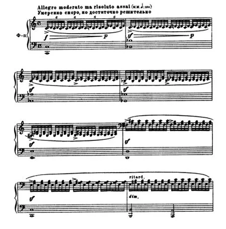 この下行音型は物悲しい聖歌風の旋律をはさんで二度登場します。正教会の鐘を聞きなれた人であるならば、この音型がペレボールであることは容易に想像がついたことでしょう。この第1曲で示されるペレボールの模倣は、2曲目以降に示される楽しげな世界への導入であり、死のイメージと結ばれる悲壮感に満ちたものとは異なります。