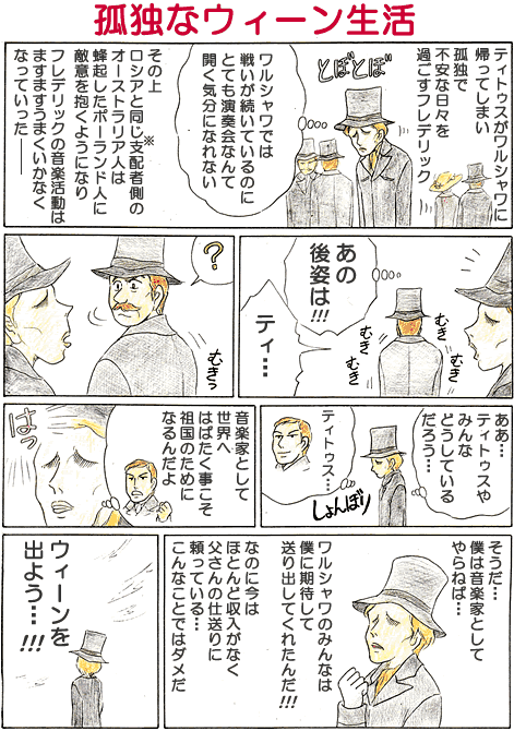 ウイーンでは出版できなかったが、マズルカ作品6、作品7、ワルツ作品34?2、管弦楽付ポロネーズ(作品22)を書き、スケルツオ1番とバラード1番に着手、ノクターン作品9、作品15にも取り組んでいたらしい。(これらは後に出版されることになる)