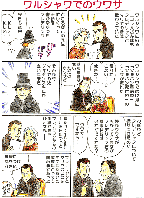 1.ワルシャワでの「ショパン重病説」 有名人ショパンはワルシャワでもなにかとウワサになったようである。病弱だったため(実際11月に寝込んでしまいパリの街ではショパンの姿を見かけなくなったため)、このようなウワサが流れてしまうことがあったようである。