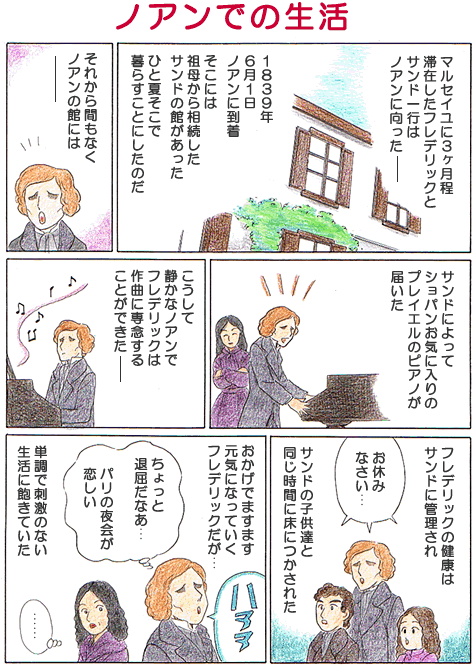 サンドはさっそくショパンを幼馴染の医者パペ博士に診断してもらう。結果は「結核ではなく、慢性の咽頭炎」と診断された。