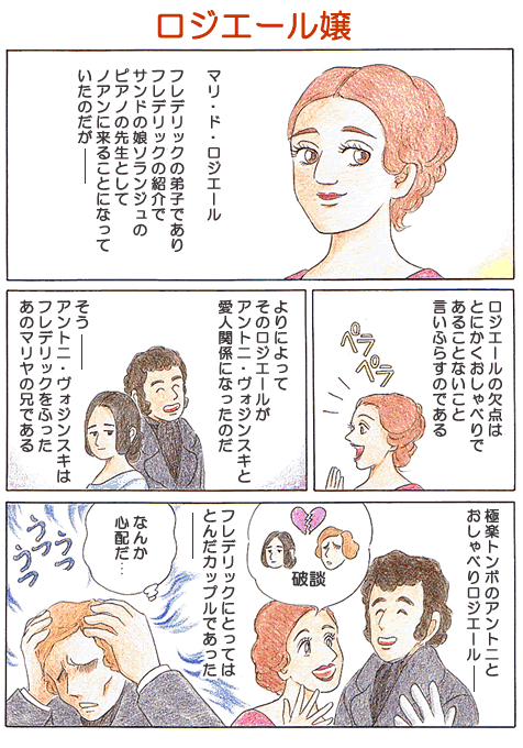 ショパンの弟子であり、ショパンはロジエール嬢をサンドの娘ソランジュのピアノの先生として、紹介していた。