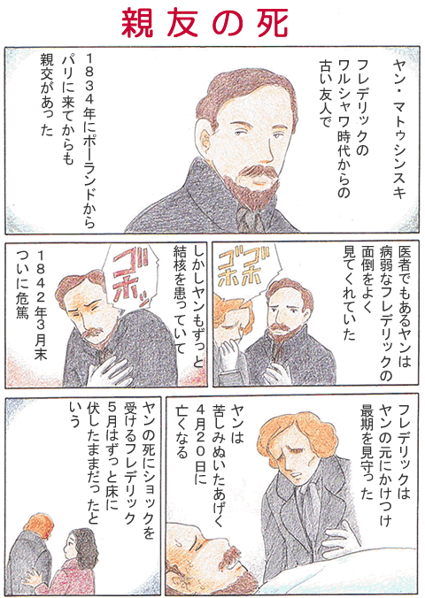 しかし、肺結核をわずらい、1842年3月末に危篤、4月20日に亡くなる。ショパンは最期まで立ち会い、かなりショックを受けていたという。