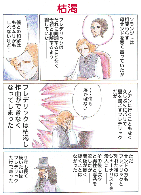 ショパンと別れた後は、ジャーナリストのヴィクトリ・ボリを愛人に、その後も次々と男性と浮名を流すサンドであったが、年齢的に女盛りであったサンドがショパンと最初は愛人だったものの、その後は数年間のプラトニックな友情関係を保ち続け、その間、他の愛人をもたなかったのは、彼女にとって非常にめずらしいことであったという。