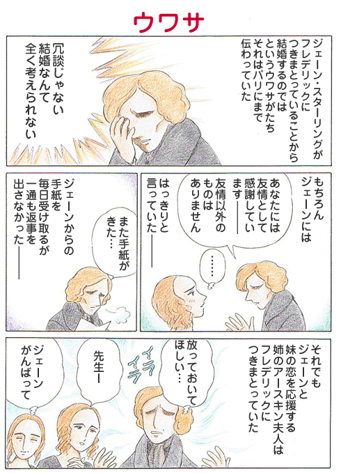 10月30日付のグジマワ宛ての手紙に「親切なスコットランド人姉妹にはうんざりしてます。「毎日手紙がきますが、一通も返事を出していません」「僕が出かけると、追ってきてつきまとうので、それを誰かが見て結婚するのではと思わせたのでしょう」と、結婚話を否定し、ジェーン・スターリングにも「あなにには友情しか感じない」というようなことをはっきりと言った、と書かれている。