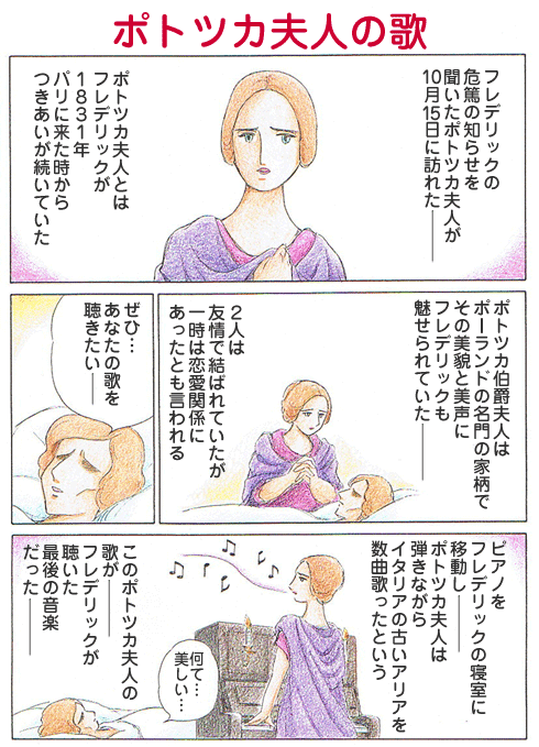 ショパンより3歳年上で、夫の財産家の伯爵とは別居し、パリに住んでいた。パリの社交界では、その美貌と美声と音楽的才能をもつポトツカ夫人は有名で、ショパンも惹かれていたという。一時は恋愛関係にあったのではという話もある。