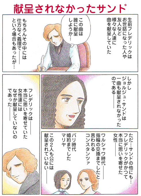 また、マリヤ・ヴォジンスカへの思いを込めて書いたというワルツ変イ長調の楽譜は、ショパンの生前は出版されず、下書きのままだったためか、ショパンが「焼却してほしい」と遺言した中に入っていた。その後フォンタナによってOp69-1として死後出版されるので、献呈者の名前はない。