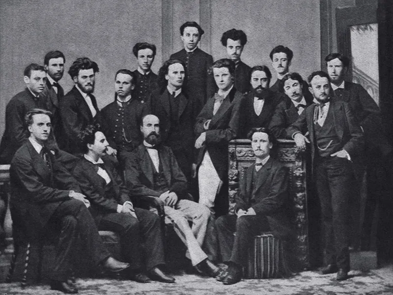 ニデルメイエール学校第3代校長ギュスターヴ・ルフェーヴルと教師・生徒たち(サン=サーンスは退職しているが、フォーレ、メサジェ、ジグの姿が見える)