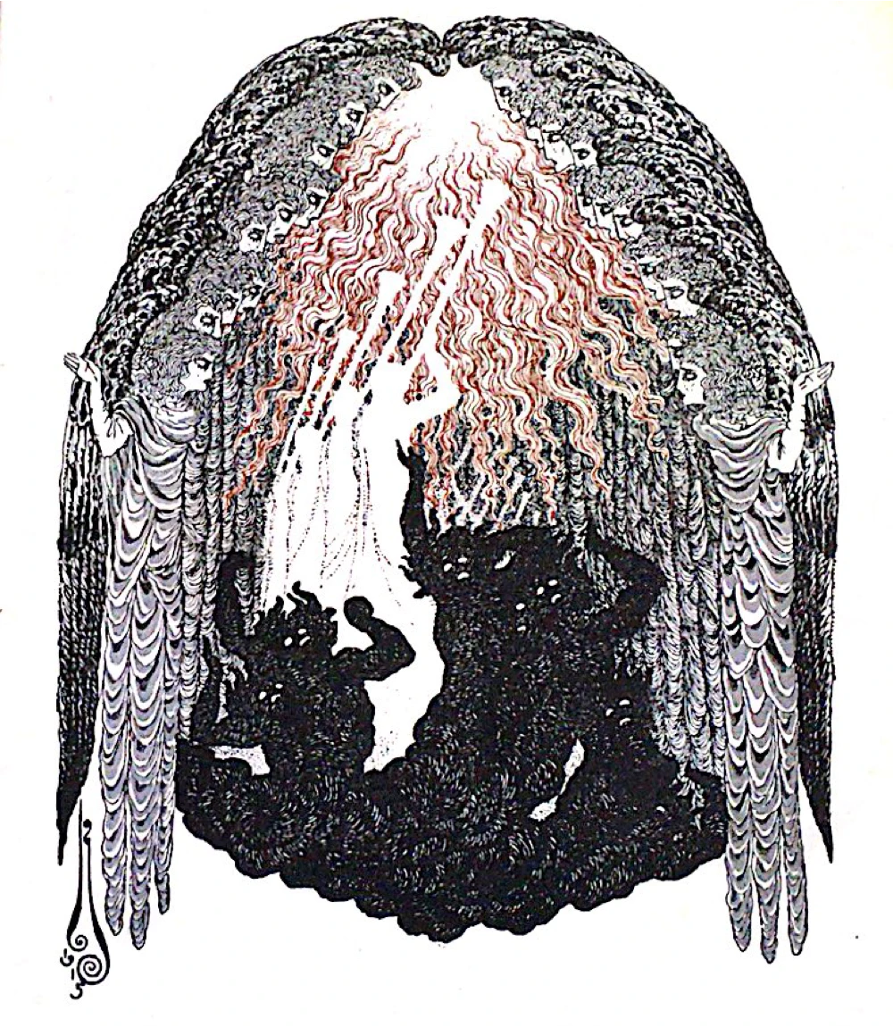 H.H.エヴレーイノフ[※1](#comment1)この詩の作者、ニコラーイ・エヴレーイノフ(1879~1953)は、劇作家、劇場監督、演劇理論家として知られる人物で、プロフェッショナルな詩人ではありませんでした。スクリャービンの死という現象は、そんな彼を(散文詩ではありますが)詩作に走らせたということになるでしょう。さて、エヴレーイノフの詩からもう1ページめくると、次のような絵画が目に飛び込んできます。