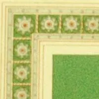 派手な緑地に白抜きの題字が印象的です。全て職人の手彫りによるものです。外枠には銀彩がほどこされています。