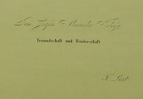 勇壮なマーチですが、リストは後にオーケストラ版も出版し、その際に第2版も出版しています(1875年)。第2版のほうがより勇壮な感じもしますが、好き好きでしょう。この版にはタイトルページとは別に、わざわざ献呈辞だけのページがついています。