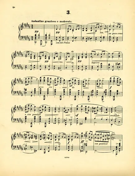 さて今回紹介する曲は1882年に出版され彼の2番目の妻である Helene( Helena) GORSKA に献呈されました。この表紙は中々凝ったもので中央にエンジェルを配し、4つの旅のシーンが添えられています。ちなみに曲集は5曲から構成されていて、有名なものは第3曲『メロディー』です。しかし曲全体を通しで聴いて(弾いて)みると表紙のイメージはあまり内容とは関係なさそうです。しかし楽しげな表紙です。