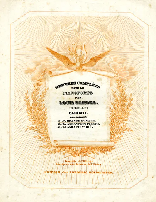 今回は日本でほとんど知られていない珍しい楽曲の紹介です。具体的には Louis = Ludwig BERGER(1777-1839) 作曲のピアノ・ソナタです。多色刷りの美しいものです。ベルガーと言えば日本ではメンデルスゾーンのピアノの先生として名前が通っていますが、彼の作曲となると全く知られていません。あえて言えば無視されているのが現状です。さてそんなベルガーですが、同じ名前のベートーヴェンより7年遅れてベルリンで生を受けました。1804年に最初のロシア演奏旅行から戻ったクレメンティにその才能を認められ、彼の弟子になります。翌1805年に師と連れられてペテルスブルグへ行きジョン・フィールドと知己になり、彼の演奏スタイルに心酔したとされています。その後は主にロンドンで活躍しますが、1817年にナポレオンの失脚を機にベルリンに戻り、作曲と後進の指導に専念します。彼が輩出した弟子のリストを見ると錚々たる名前が連なっています。少々例を挙げましょう。メンデルスゾーン姉弟、アドルフ・フォン・ヘンゼルト、オットー・ニコライ、グズタフ・ノッテンボーム etc。そんなわけで日本ではメンデルスゾーンの先生と言うわけです。ピアニストとしても活躍し、とりわけベートーヴェンの演奏で高い評価を受けていたそうです。