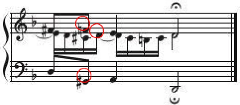 問題 この非和声音の種類はなんというでしょう? 倚音・掛留音・刺繍音第1小節~