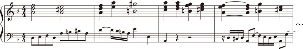 減7の和音 (短3度を積み重ねた和音です。この後、d mollの属7の和音につながり、終止しています)