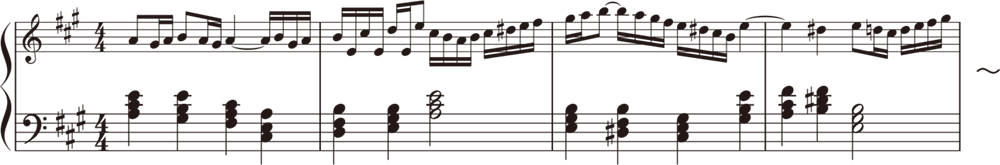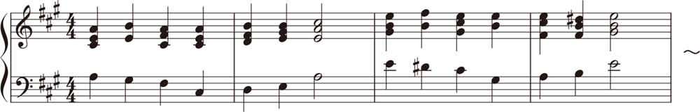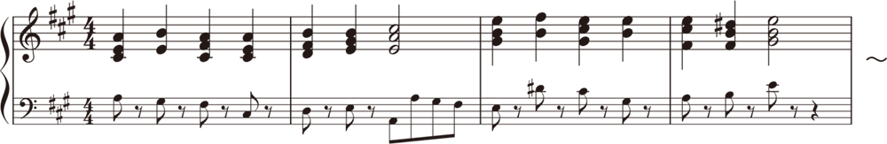 3.左手は和音、右手は1番上の旋律をそのまま弾く