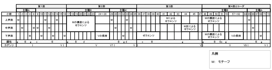 大半の部分は1小節1つの和音で作られている音楽です。和声進行の作るフレーズを考えて、メランコリーな表情が表現出来るといいですね。コラム